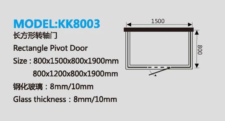 Numărul modelului: KK8003 Material pentru panou: sticlă temperată Grosimea sticlei: 8mm/10mm Stil deschis: balamală Certificare de sticlă temperată: DIN EN 12150, AS/NZS 2208: 1996, ANSI Z97. 1-2004, BS6206